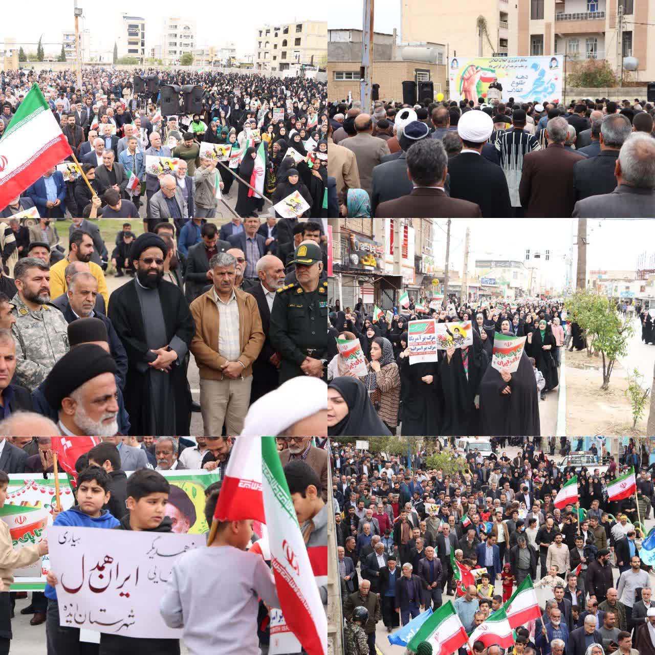 مردم ایذه امروز پس از حماسهی یومالله ۲۲ دیماه که در محکومیت و اعلام انزجار از اقدامات تروریستیِ مسلحانهی عوامل موساد به صحنه آمده بودند، بار دیگر سالگرد پیروزی انقلاب را جشن گرفته و جنایات آمریکا و اسرائیل در این سالها و خصوصاً جنگ ۱۲ روزه و شبه کودتای دیماه ۱۴۰۴ را محکوم میکنند.